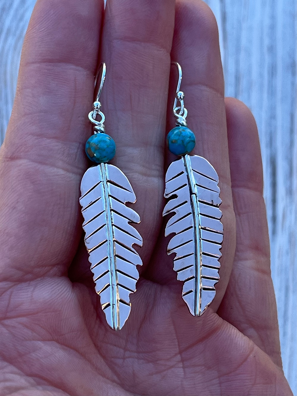 Sterling Silver Feather w/ Turquoise Earrings - Large