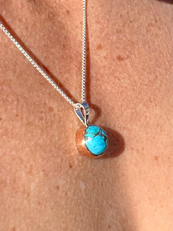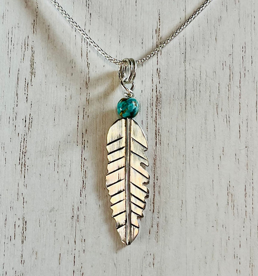 Feather Necklace in Sterling Silver w/ Turquoise Bead